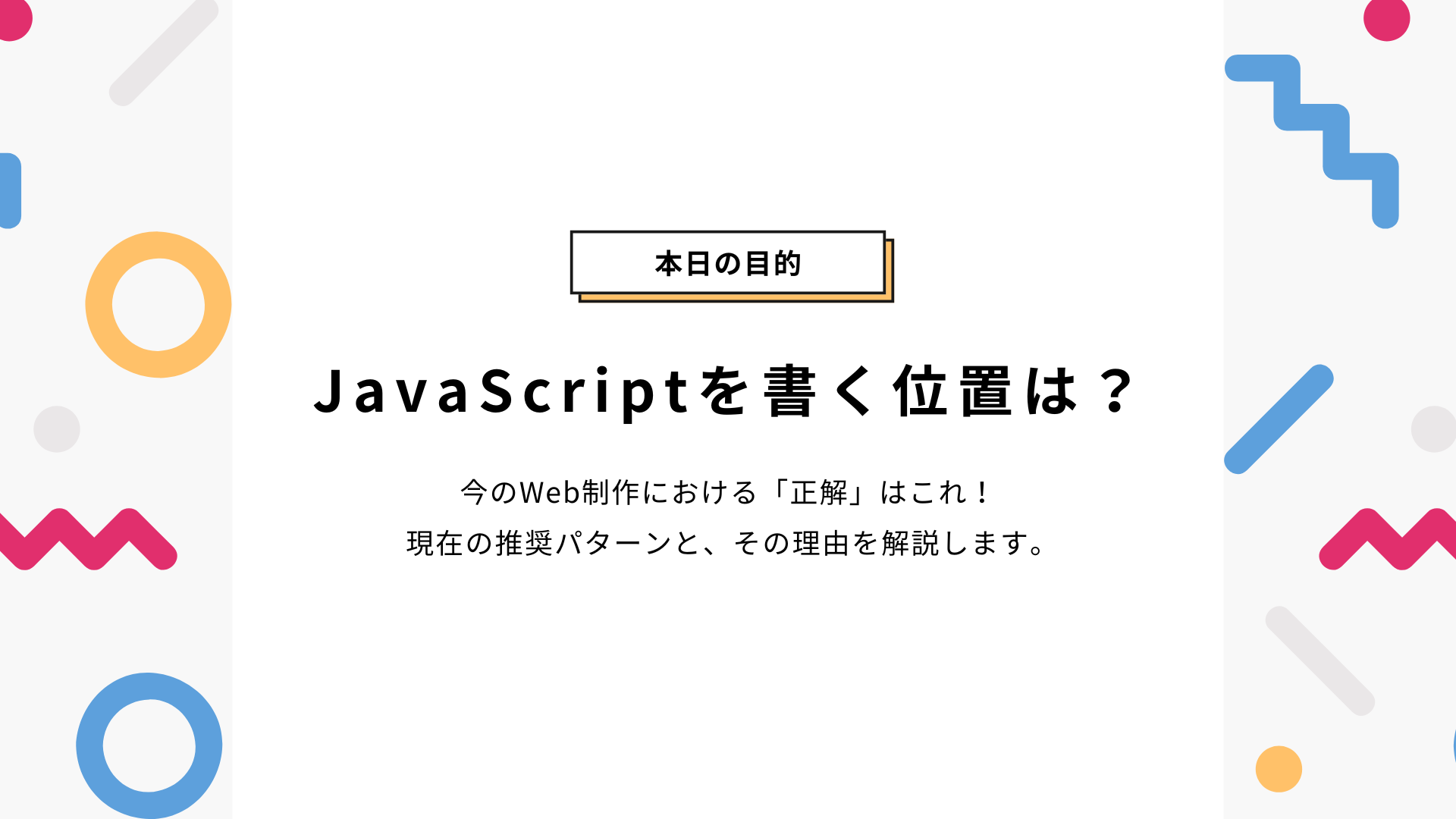 JavaScriptはHTMLのどこに書くのが正解?現在の推奨である「head内にdefer」と、学習用の「body閉じ直前」の使い分けを徹底解説。Google Analyticsなどの外部ツールの例外や、画面崩れを防ぐ仕組みまで、初心者向けにわかりやすくまとめました。 -