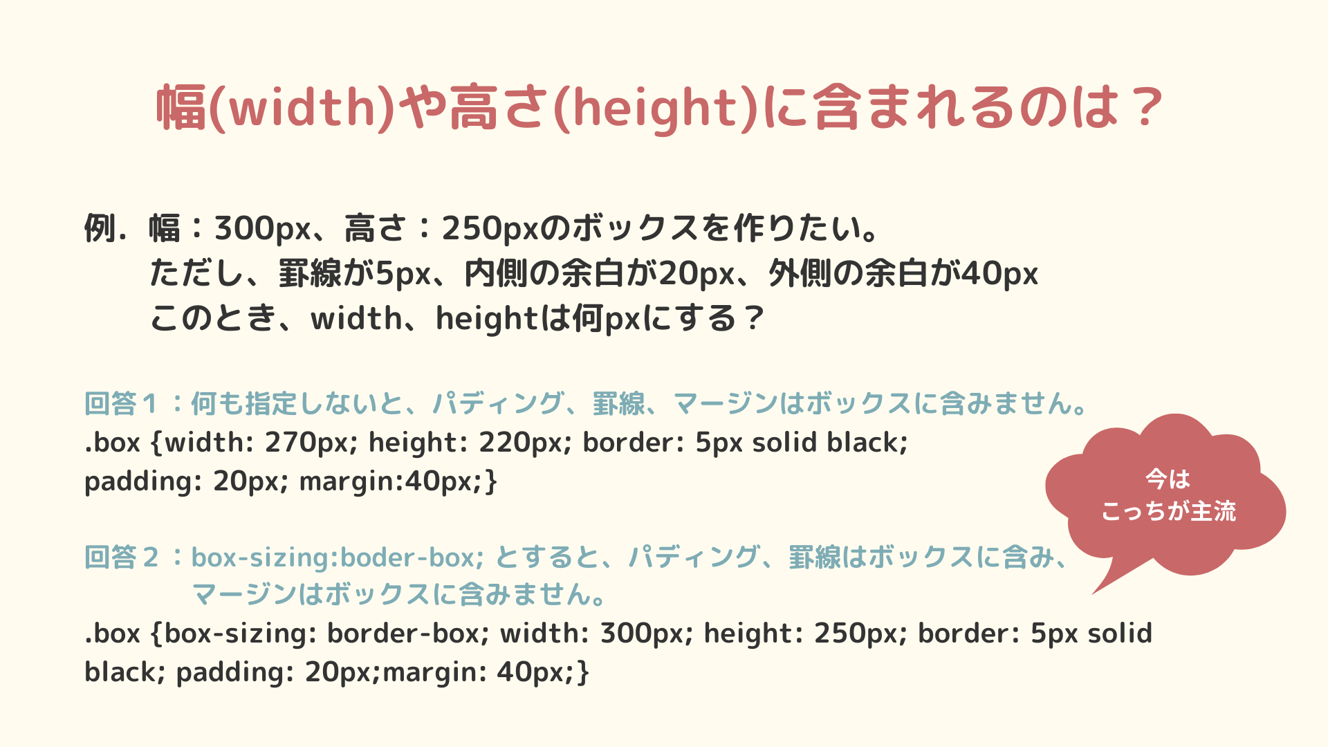 | 余白の場所 | 枠線の「内側」 | 枠線の「外側」 |