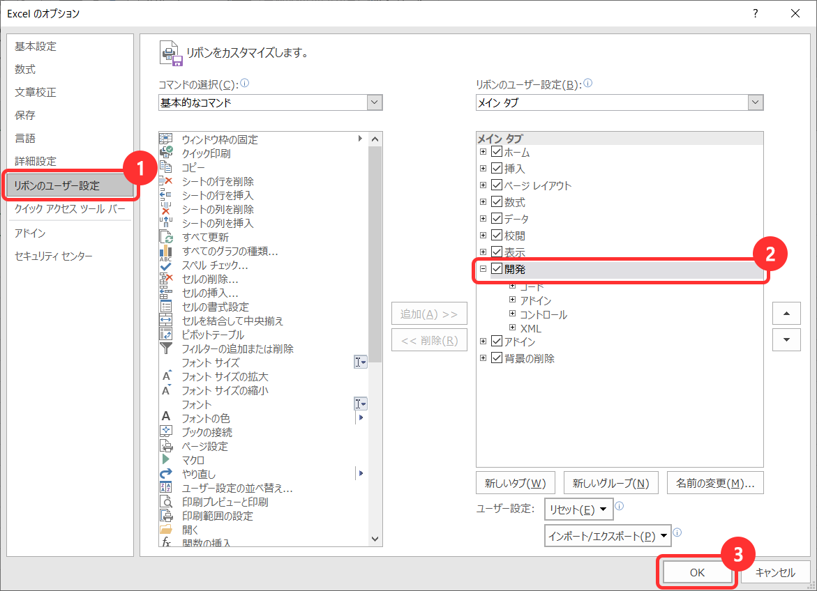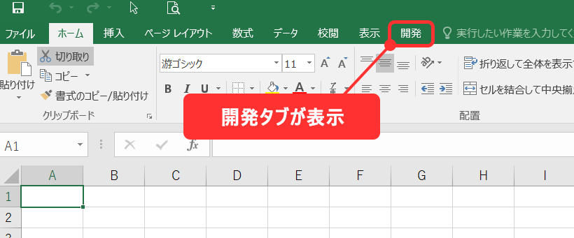 「開発」タブが表示されれば完了です。一度、設定すれば次回以降は必要ありません。