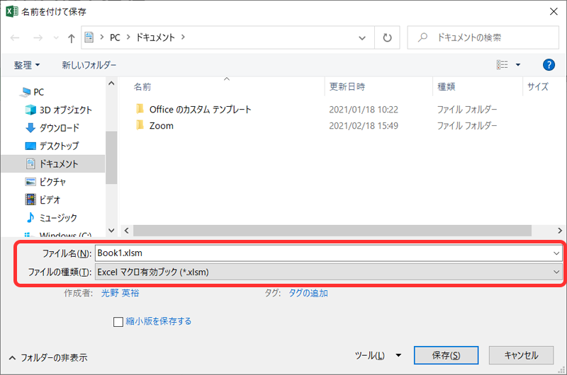 マクロを登録しているエクセルは「マクロ有効ブック」という形式でファイルを保存します。拡張子は「.xlsm」になります。