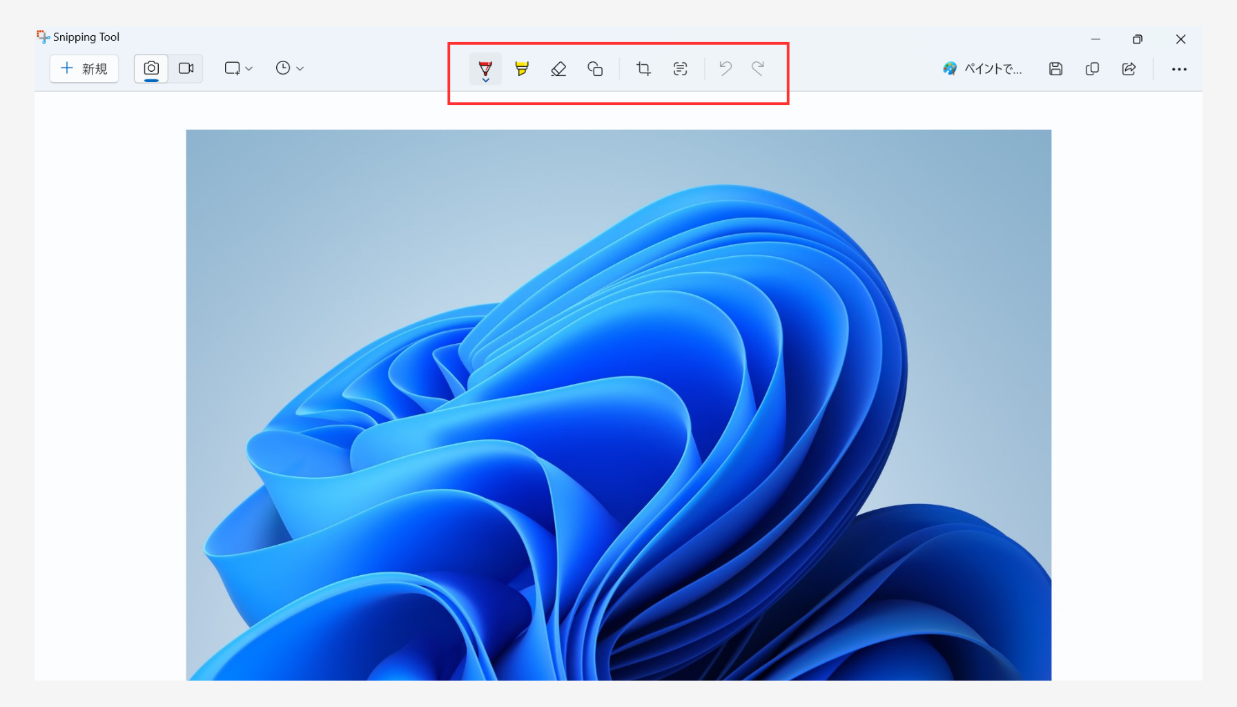 - 撮影したスクリーンショットの編集画面(Snipping Tool)が開きます。